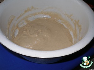 В 1 стакан муки добавляем дрожжи, которые уже поднялись, и половину стакана молока. Всё хорошенько перемешиваем и ставим в тёплое место на 1,5-2 часа.