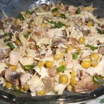 - Грибы (шампиньоны или вешенки, отварные) — 300 г