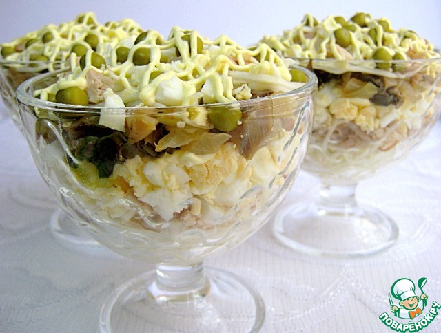 Рецепт «Салат из курицы и грибов "Нежность"»: