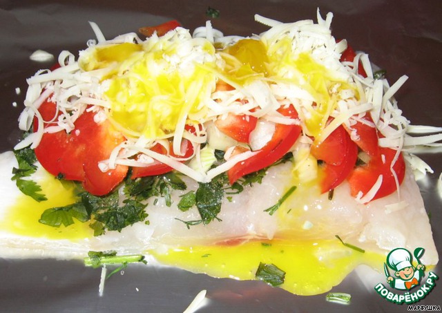 • Посыпаем сыром и зеленью. Заворачиваем в фольгу и ставим в разогретую духовку на 15 минут.