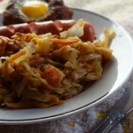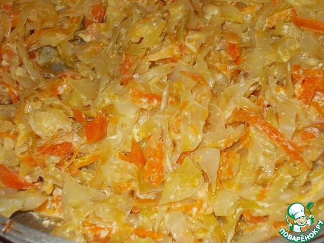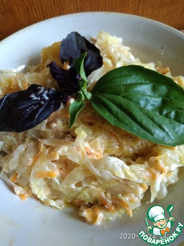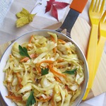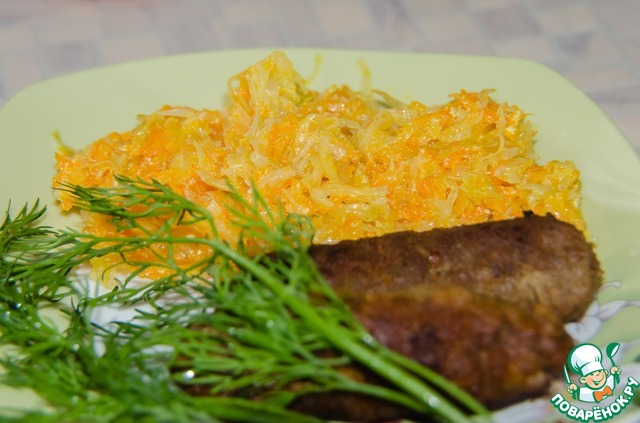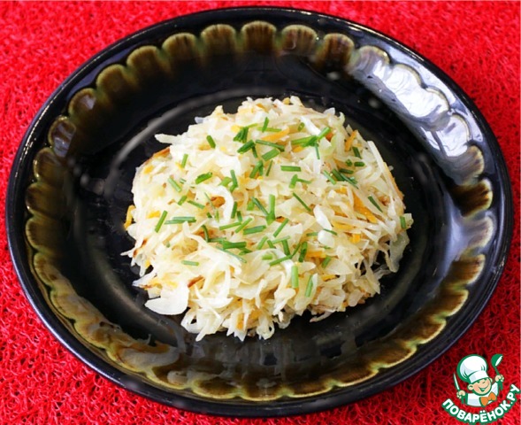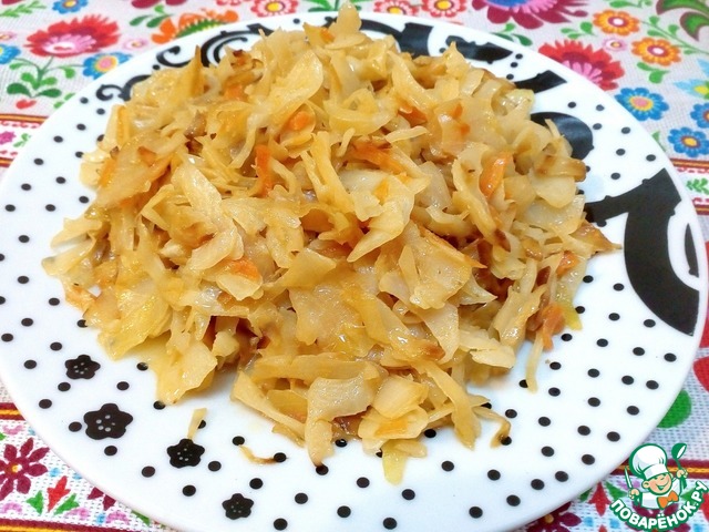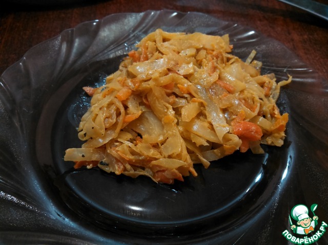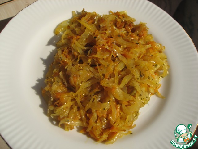 Гарнир этот - просто находка!!! Готовится за 10 минут плюс время на шинковку капусты. Поскольку у меня Бернер, значит, плюс 5 минут. Капустка очень хороша в качестве гарнира. Ее можно взять в лоточке на работу и перекусить в обеденный перерыв, т. к. она хороша и в холодном виде. И как начинка в пироги она изумительна, если добавить к ней вареных яиц - вообще СУПЕР!!!