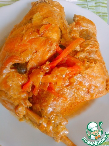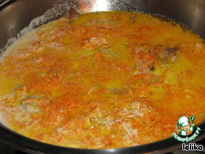 Заливаем сметанным соусом и доводим до готовности на медленном огне, примерно, в течении часа.