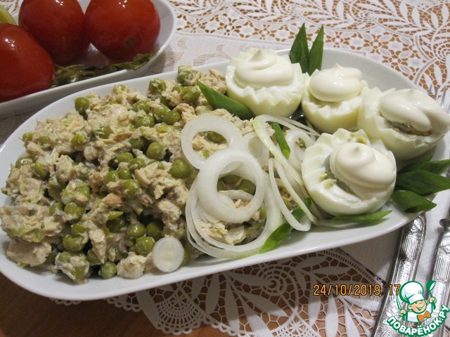 - Горошек зеленый (консервированный) — 1 бан.