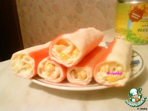 Дело было вечером, делать было нечего! Хотелось чего-нибудь вкусненького. Где-то когда-то слышала, что фаршируют палочки крабовые. Заглянула в холодильник - палочки есть. Ну а начинка сама собой нашлась!