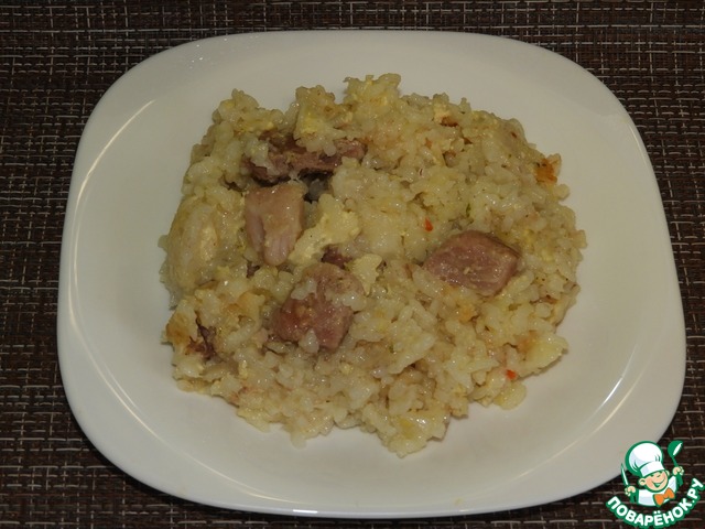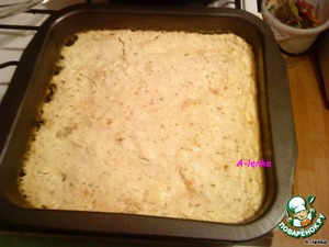 Сверху засыпать рисом (я сыпала сухой, но советую отварить его немного, так приготовление займет меньше времени).