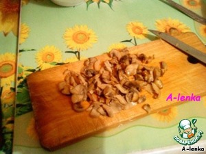 • А грибочки тем временем зарумянились до красивого золотистого цвета и порезались.