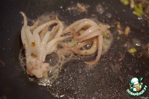 Отдельно обжариваем целых осьминогов. Признаюсь, я это сделала на той же сковородке, только основную массу в сторону отодвинула. Потом их отдельно отложить, пусть ждут своего звёздного часа.