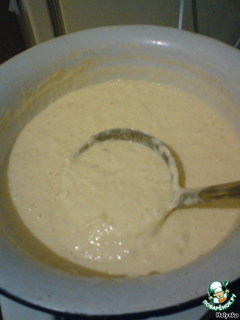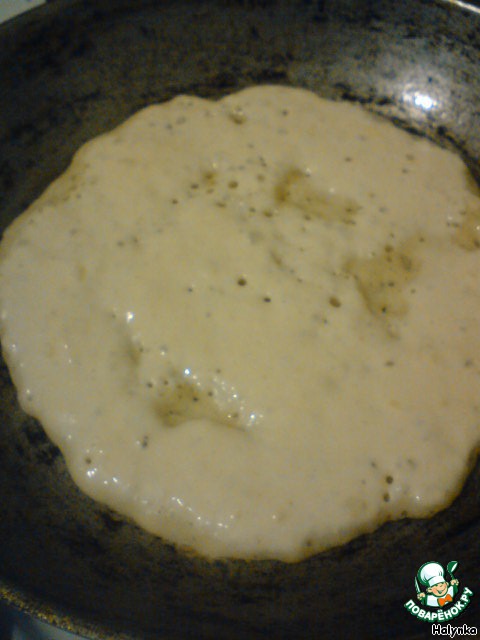 Теперь берем тесто поварешкой и наливаем на горячую сковородку с растительным маслом на дне.