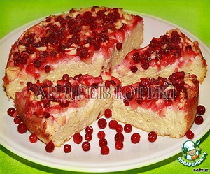 Рецепт «Творожная запеканка с яблоками и брусникой»:
