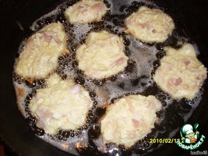 Брать тесто ложкой и жарить на растительном масле, как оладьи.