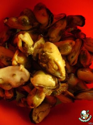 Мидии (у меня маринованные) отбросить на дуршлаг.