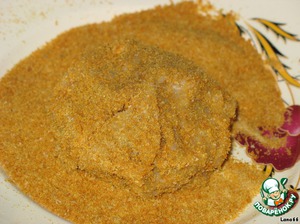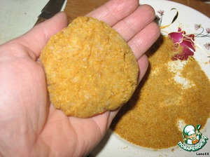 Берем столовой ложкой желаемое количество фарша и выкладываем в сухари. Обсыпаем, обваливаем со всех сторон.