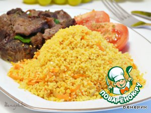 Самый вкусный гарнир к баранине))) Рецепт "Пряная, нежная баранина, запеченнная с помидорами", к которому я приготовила этот кус-кус, можно посмотреть здесь https://www.povareno k.ru/recipes/show/40 870/ Прекрасный союз этих двух блюд можно назвать: "минимум усилий - максимум удовольствия")))