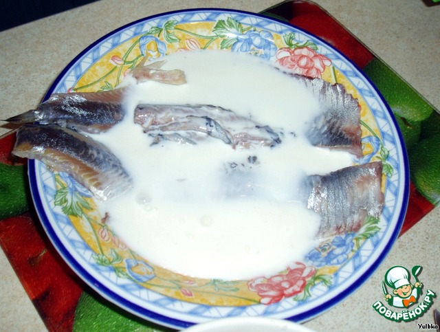 ингредиенты. Этот шаг можно пропустить в том случае, если сельдь нежная и не сильно соленая. -