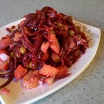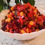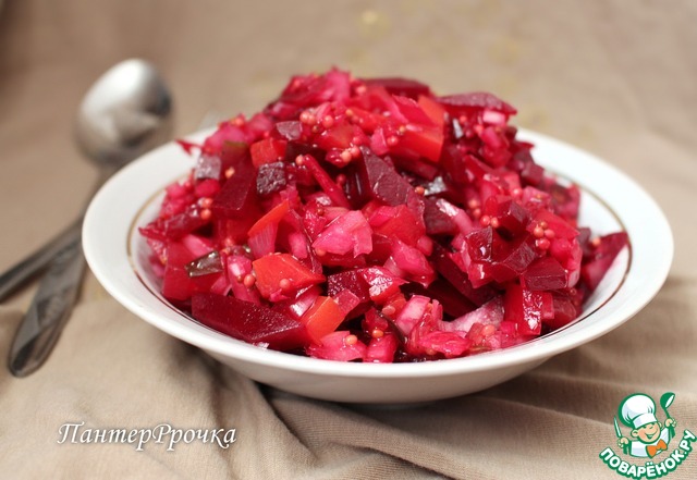 Только не говорите сразу своe "фи"... Это не тот привычный для нас старый, добрый винегрет... Здесь нет ни картошки, ни солeной капусты, зато есть очень вкусная заправка для свеклы... ну, вобщем, что говорить, заходите, смотрите, читайте, пробуйте))) Источник рецепта Мириам (тeтя маша), большое ей спасибо)))