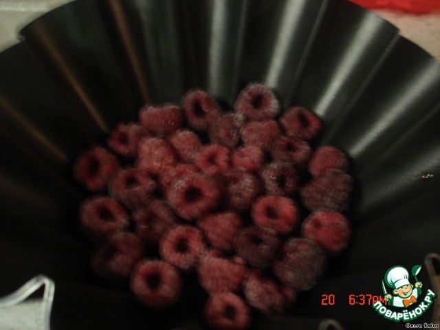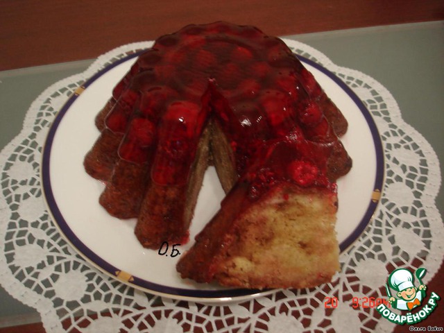 На ягоды укладываем наш остывший пирог, предварительно проткнуть со всех сторон зубочисткой, чтобы желе заполнило.