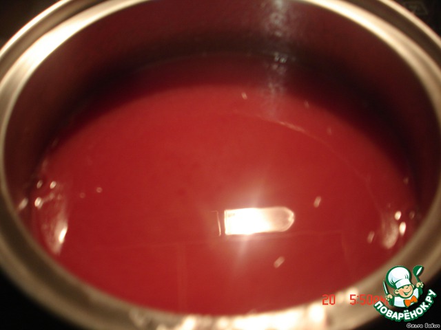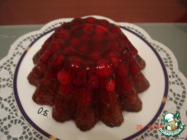 В форму, где выпекали, наливаем 1 стак. желе, даем застыть