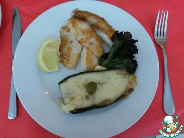 Рецепт «Филе трески с салями и тушеными баклажанами»: