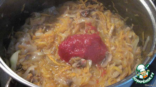 У меня не было помидоров и болгарского перца, поэтому положила томатную пасту.