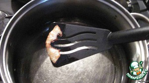 Проверяем готовность масла. Кто как - я положила кусочек лука, он быстро позолотился, готово!