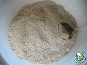 Просеять овсяную и пшеничную муку, добавить сахар, соль, соду, лимонную кислоту, корицу и перемешать.