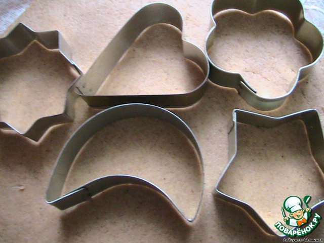 Вырезать выемками для теста. Мне помогал вырезать малыш. Сам всё вырезал. Если нет выемок, можно просто слепить печеньица в виде лепёшечек, сердечек и т. п.