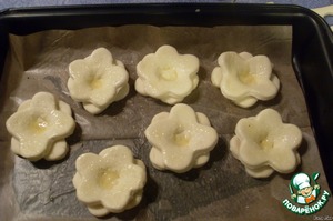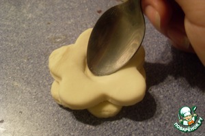 Складываем по два цветка и чайной ложкой вдавливаем по центру. Так серединка при выпечке не поднимется и верхние лепестки поднимутся.