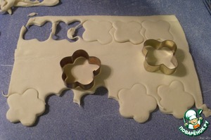 Из оставшегося теста не раскатывая выдавливаем цветы с помощью формочек для печенья.