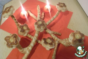- Тесто слоеное дрожжевое (у каждого индивидуально) — 0.5 кг