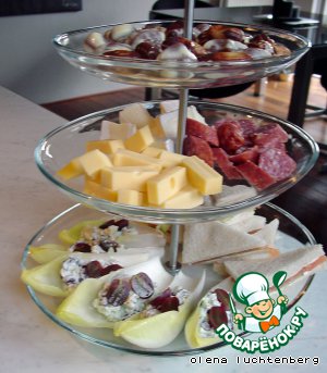 Простая, но элегантная закуска. Любители сыра с плесенью сочтут себя в небесах... Витлуф (салатный цикорий) добавляет свежесть, а виноград – сладкие нотки.