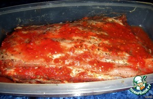 После этого мясо положить в форму, залить густым томатным соком и оставить мариноваться на 2 часа, можно на ночь.