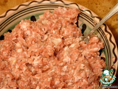 • В фарш добавляем измельченную луковицу, соль и перец по вкусу.