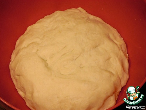 Так что начнем-с. Из воды, размягченного масла, яйца, муки и щепотки соли замешиваем крутое, но мягкое тесто. Отставляем на время, прикрыв полотенцем. Сливочное масло делает готовое тесто мягче и нежнее на вкус. А также придает сырому тесту эластичности.