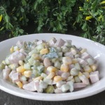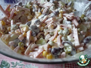 Добавляем майонез, все еще раз перемешиваем. Все - наш салат готов. Приятного аппетита.