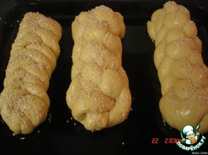 Перед тем как поставить в духовку, смазать яйцом, присыпать кунжутом.