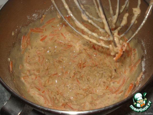 2. Добавить муку, разрыхлитель, орехи и морковь.