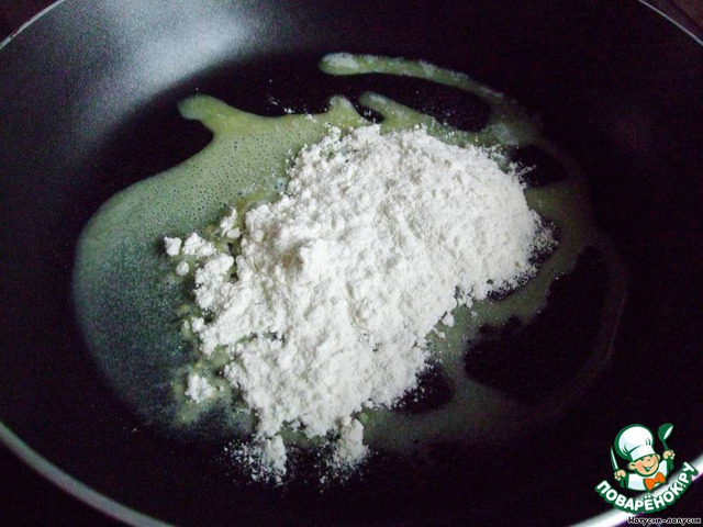 Для соуса муку немного обжарить на сливочном масле. Соединить с горячим молоком и варить, постоянно помешивая, до загустения соуса.