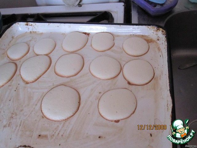 Ставим противень в предварительно разогретую духовку. Вынимаем, как только края теста начнут подрумяниваться - если передержите - тесто будет ломким.