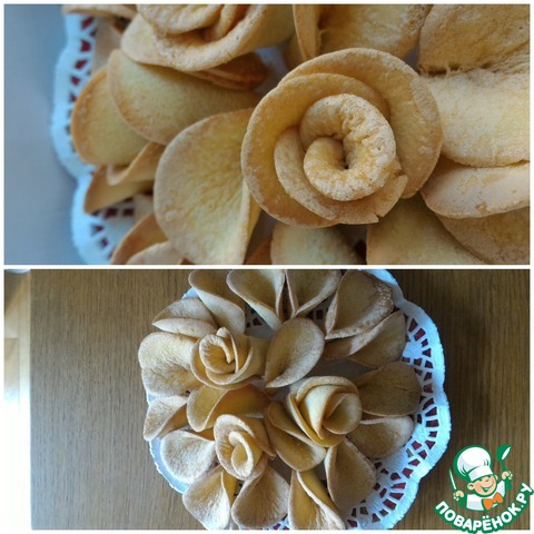 На противень, предварительно смазанный сливочным маслом, по 0,5 ч. л. выкладываем тесто (оно немного растекается, поэтому выкладывайте кружочки теста не очень близко). Количество кружков должно быть кратно 3 - по количеству лепестков в наших розах.