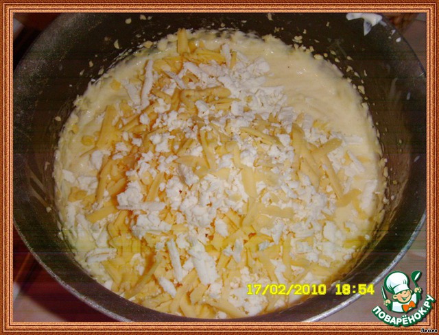 - Сыр твердый (желтый, тертый на мелкой терке ) — 100 г