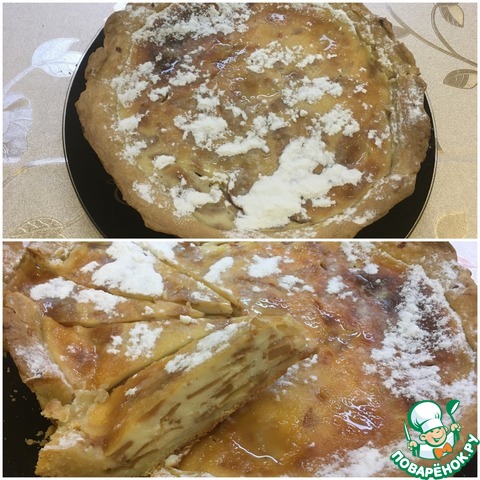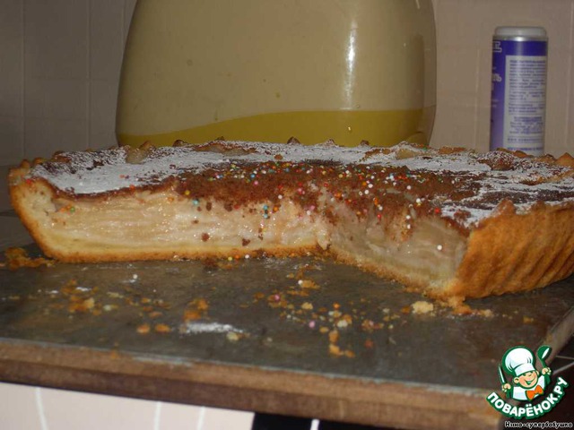 Нарезать на куски только когда пирог полностью остынет. Это бесподобно вкусный пирог.