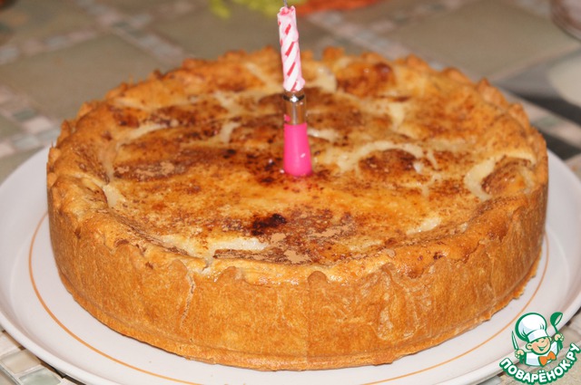 Готовый пирог вынуть из духовки и оставить в форме минут на 10. Когда немного остынет, осторожно вынуть пирог из формы на решетку и накрыть салфеткой.