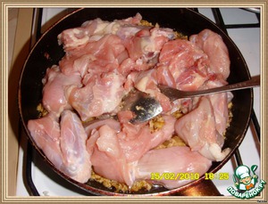 Подготовить курицу - помыть, удалить кожу, срезать лишний жир.