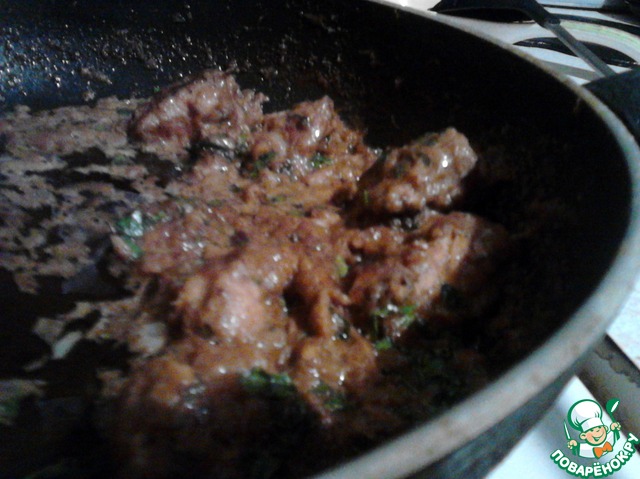 Обжарить, пока не потемнеет и не будет слегка постреливать.