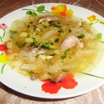 Ничего не могу с собой поделать - люблю я потрошка: желудочки, печеночки и, конечно, сердечки... Вот и использую их на всю катушку. Супчик несложный в приготовлении, очень ароматный и легкий.