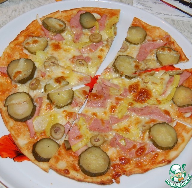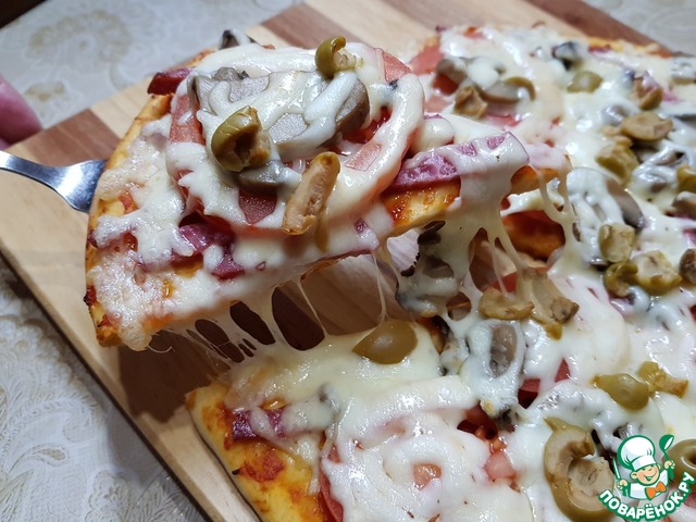 Рецепт «Пицца с ветчиной и шампиньонами»: