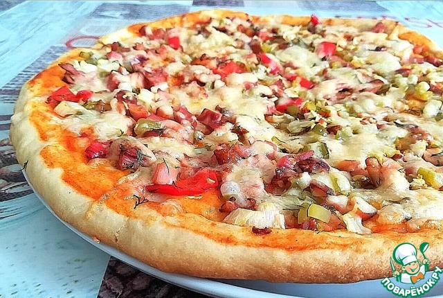Вот и пришла мне в голову шальная мысль, соединить два этих блюда в одном. Итак, пицца-солянка.