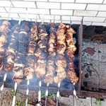 А по истечении 7-8 часов я насаживаю мясо на шампуры и жарю на электрошашлычнице минут 10-15, потом сбрызгиваю их жидким дымом и жарю до готовности.