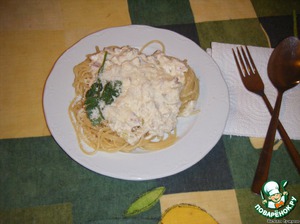 Рецепт «Спагетти с соусом под "Карбонара" с луком»: