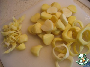 Картофель чистим, нарезаем крупными пластинками и вырезаем сердечки, формочкой для приготовления печенюшек.. обрезки картофеля мелко нрезаем